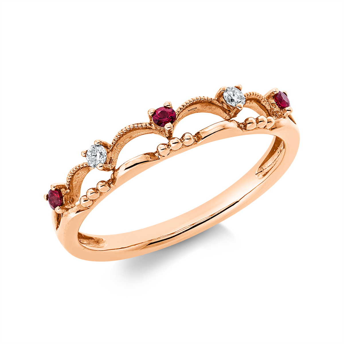 Ring 18 kt RG, 2 Brillanten 0,04 ct, TW-si, 3 Rubine 0,07 ct rot, B:3,5 mm, Weite:52