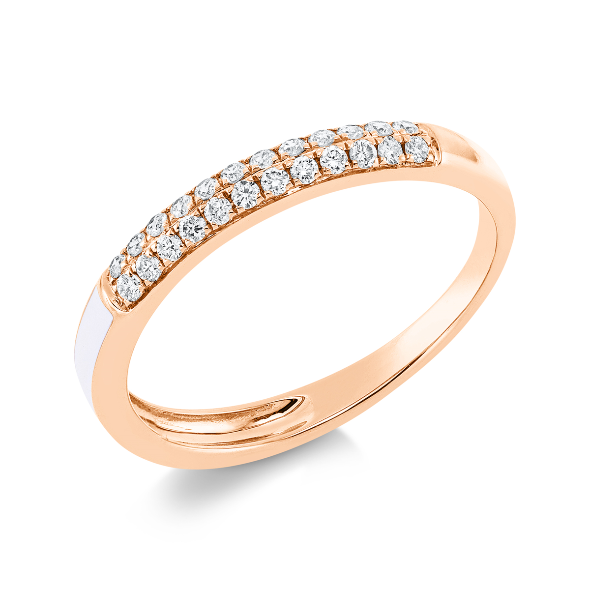 Ring 18 kt RG, 24 Brillanten 0,17 ct, TW-si, 1 Emaille weiß, Weite:53