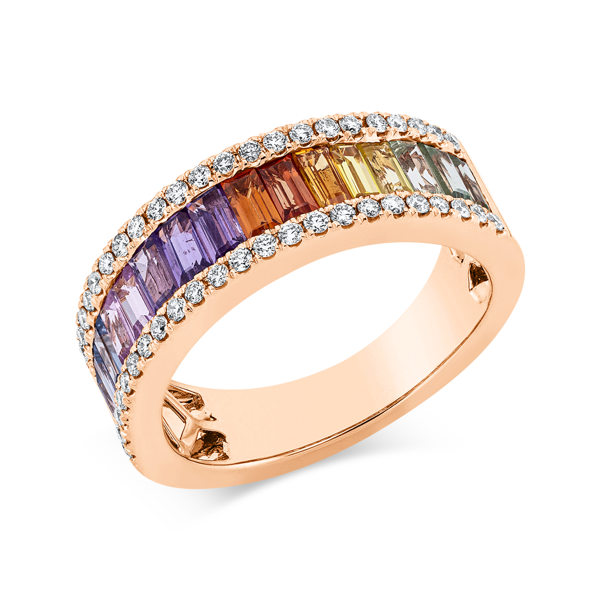 Ring 18 kt RG, 46 Brillanten 0,31 ct, TW-si, 16 Saphire 2,20 ct fancy, Weite:54