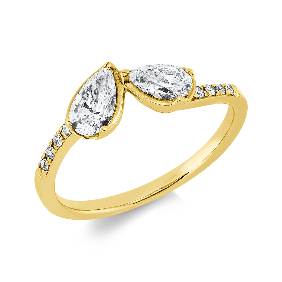 Ring 18 kt RG, 2 Tropfen 0,58 ct, TW/W-vsi, 8 Brillanten 0,06 ct, TW/W-si, Weite:52