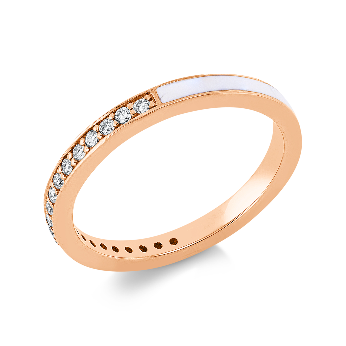 Ring 18 kt RG, 20 Brillanten 0,19 ct, TW-si, 1 Emaille weiß, Weite:53