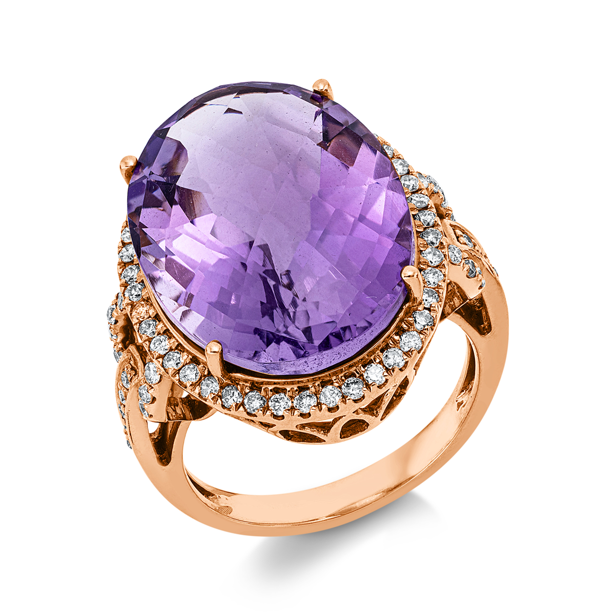 Ring 18 kt RG, 68 Brillanten 0,49 ct, W-si, 1 Amethyst 13,76 ct lila, Weite:52,5