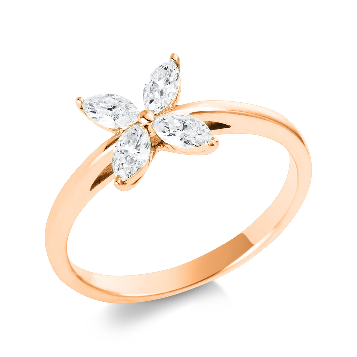 Ring 18 kt RG, 4 Navette 0,31 ct, TW-si, H:22,4 mm, B:19,5 mm, Weite:51
