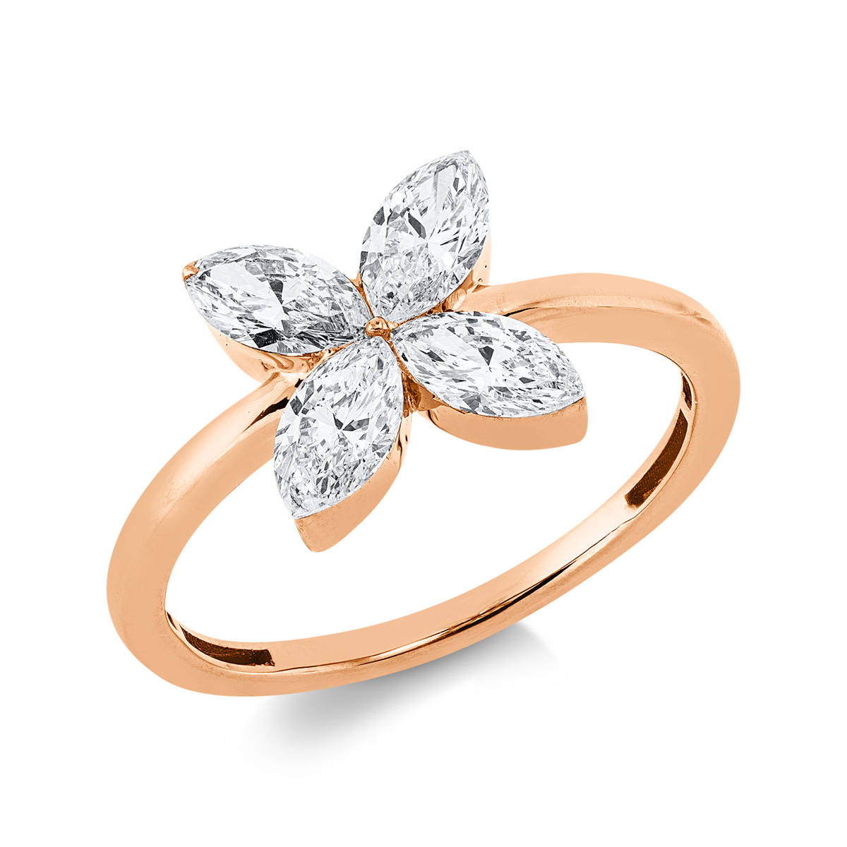 Ring 18 kt RG, 4 Navette 1,12 ct, TW-si, Weite:54