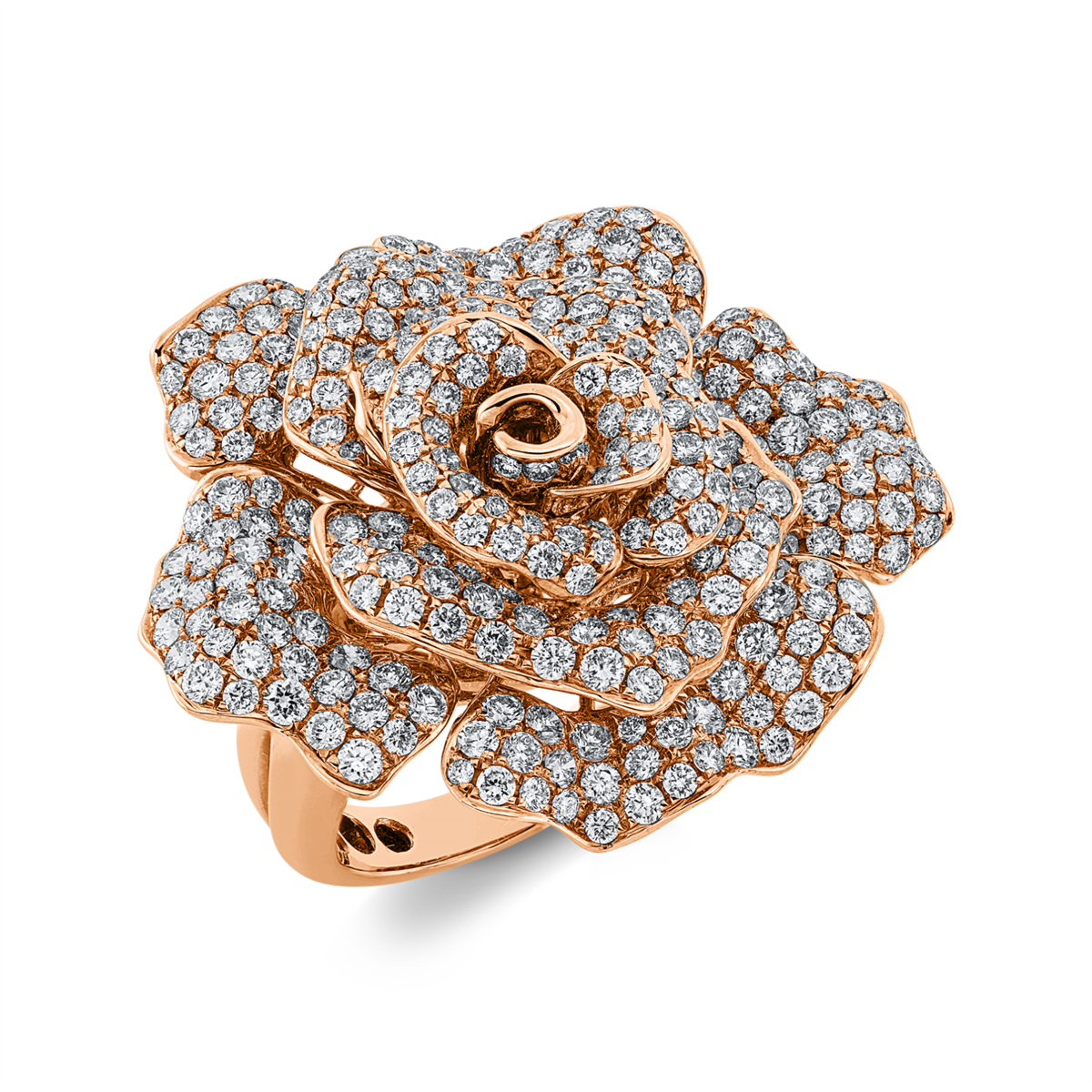 Ring 18 kt RG Blume/Blumen, 321 Brillanten 4,11 ct, TW-si, Weite:53