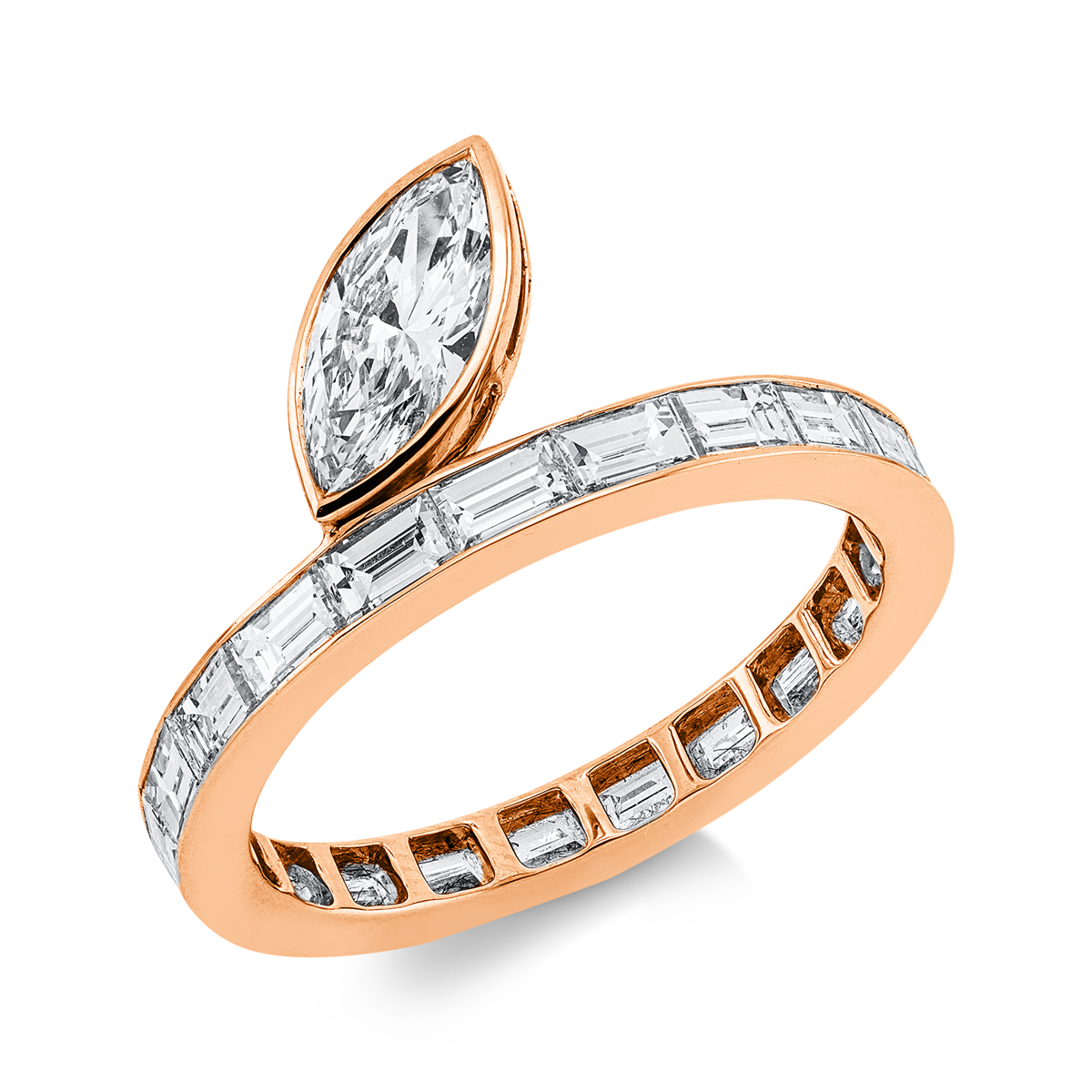 Ring 18 kt RG, GIA 6511339543, 1 Navette 0,51 ct, W-vvs2, 21 Baguette 1,65 ct, TW-vsi/si, Weite:53
