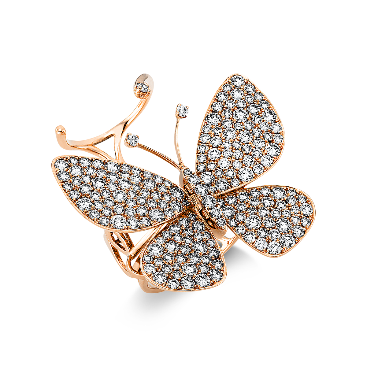 Ring 18 kt RG Schmetterling, 191 Brillanten 5,27 ct, TW-vsi/si, Weite:54