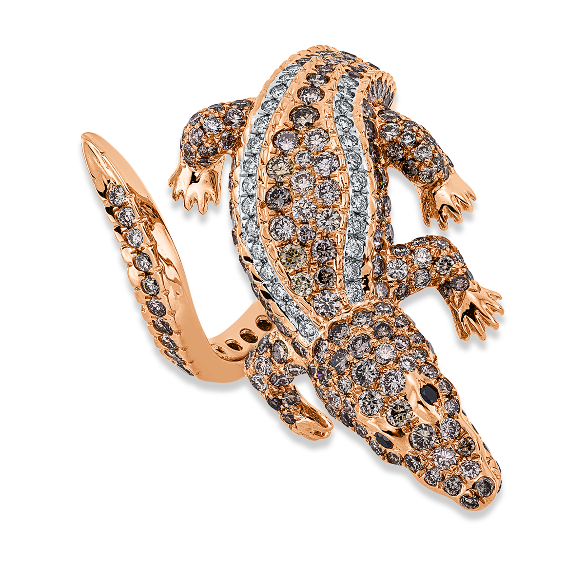 Ring 18 kt RG+WG, 27 Brillanten 0,16 ct, TW-si, 222 Brillanten 2,41 ct, braun, 2 Brillanten 0,02 ct, schwarz, Weite:53