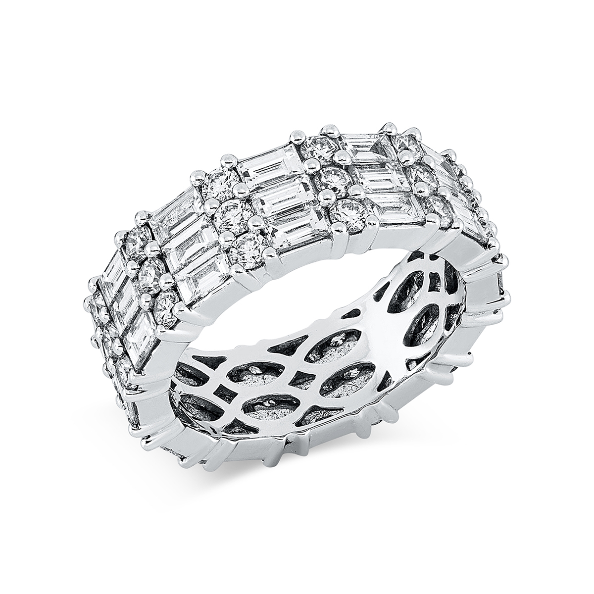 Ring 18 kt WG, 36 Baguette 2,92 ct, TW-vsi/si, 36 Brillanten 1,30 ct, TW-vsi/si, Weite:53
