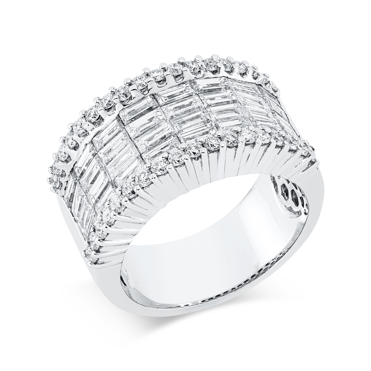 Ring 18 kt WG, 32 Baguette 2,16 ct, W-vsi, 32 Brillanten 0,56 ct, TW-si, Weite:54
