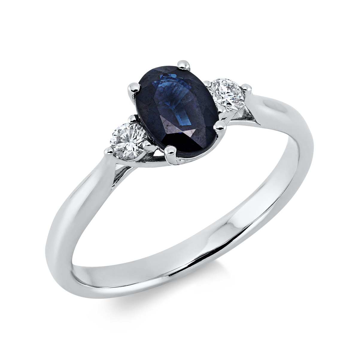 Ring 18 kt WG, 2 Brillanten 0,14 ct, TW-si, 1 Saphir 0,93 ct blau, H:11,4 mm, B:7,0 mm, Weite:54