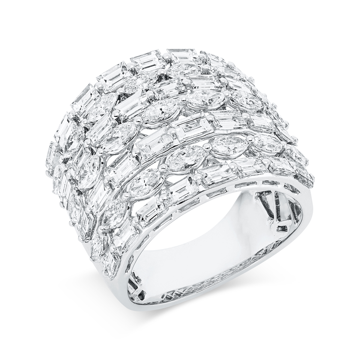 Ring 18 kt WG, 21 Navette 1,49 ct, TW-si, 32 Sm.schliff 2,97 ct, TW-si, Weite:55