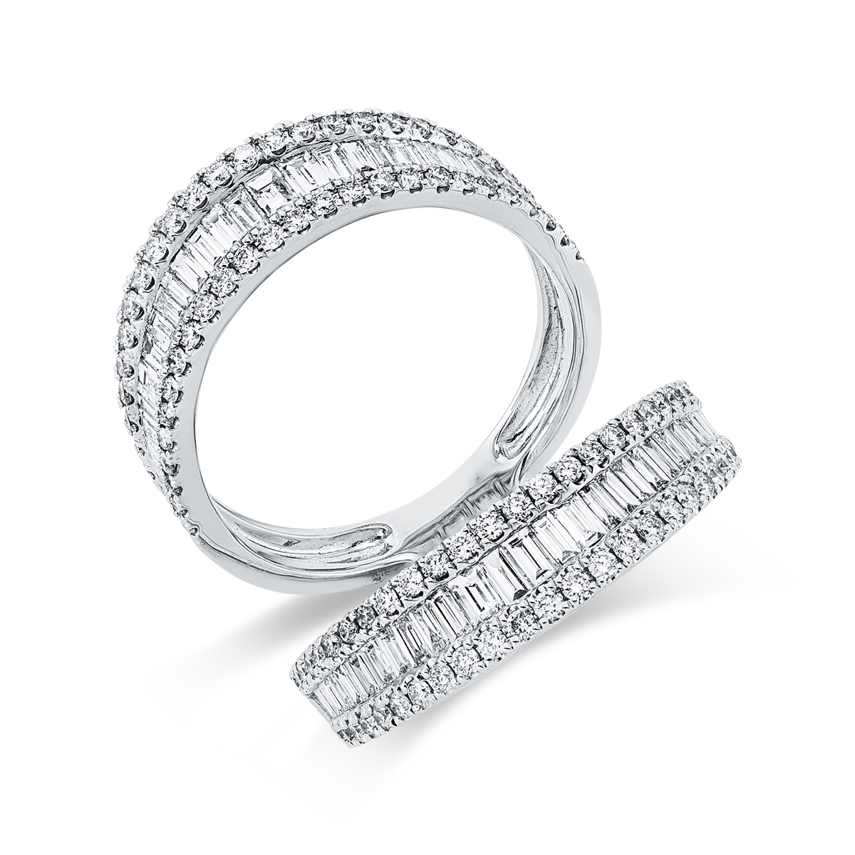 Ring 18 kt WG, 64 Baguette 0,95 ct, TW-si, 104 Brillanten 0,69 ct, TW-si, B:25,8 mm, Weite:54
