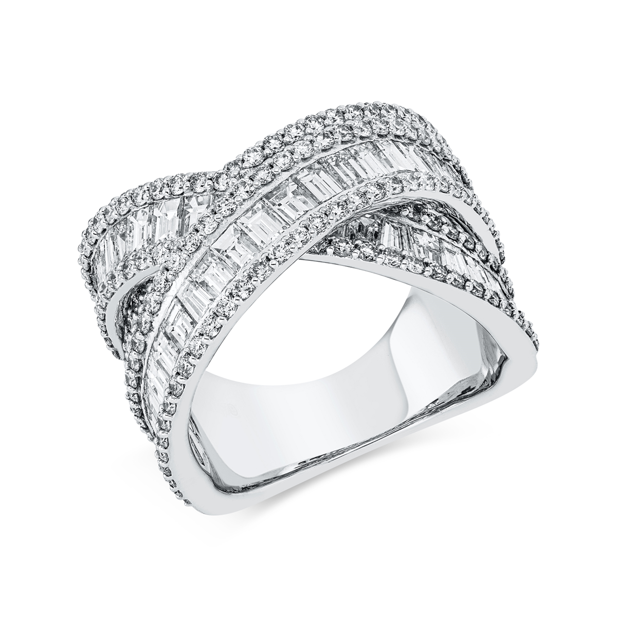 Ring 18 kt WG, 46 Baguette 2,79 ct, TW-si, 182 Diamanten 2,00 ct, TW-si, Weite:53,5