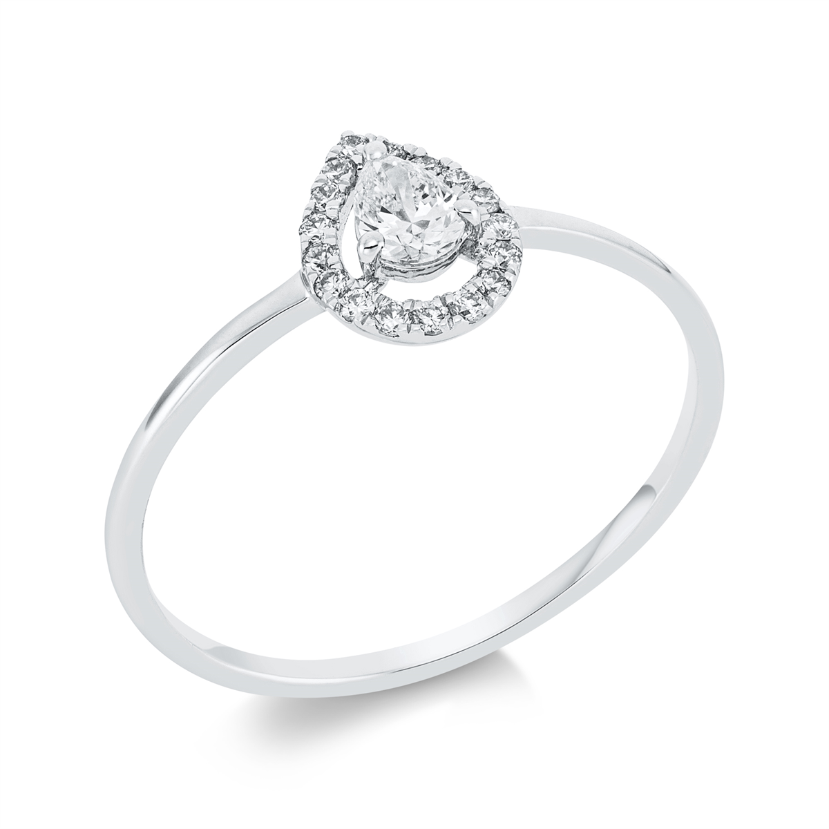 Ring 18 kt WG, 1 Tropfen 0,15 ct, W-si, 17 Brillanten 0,09 ct, W-si, Weite:54