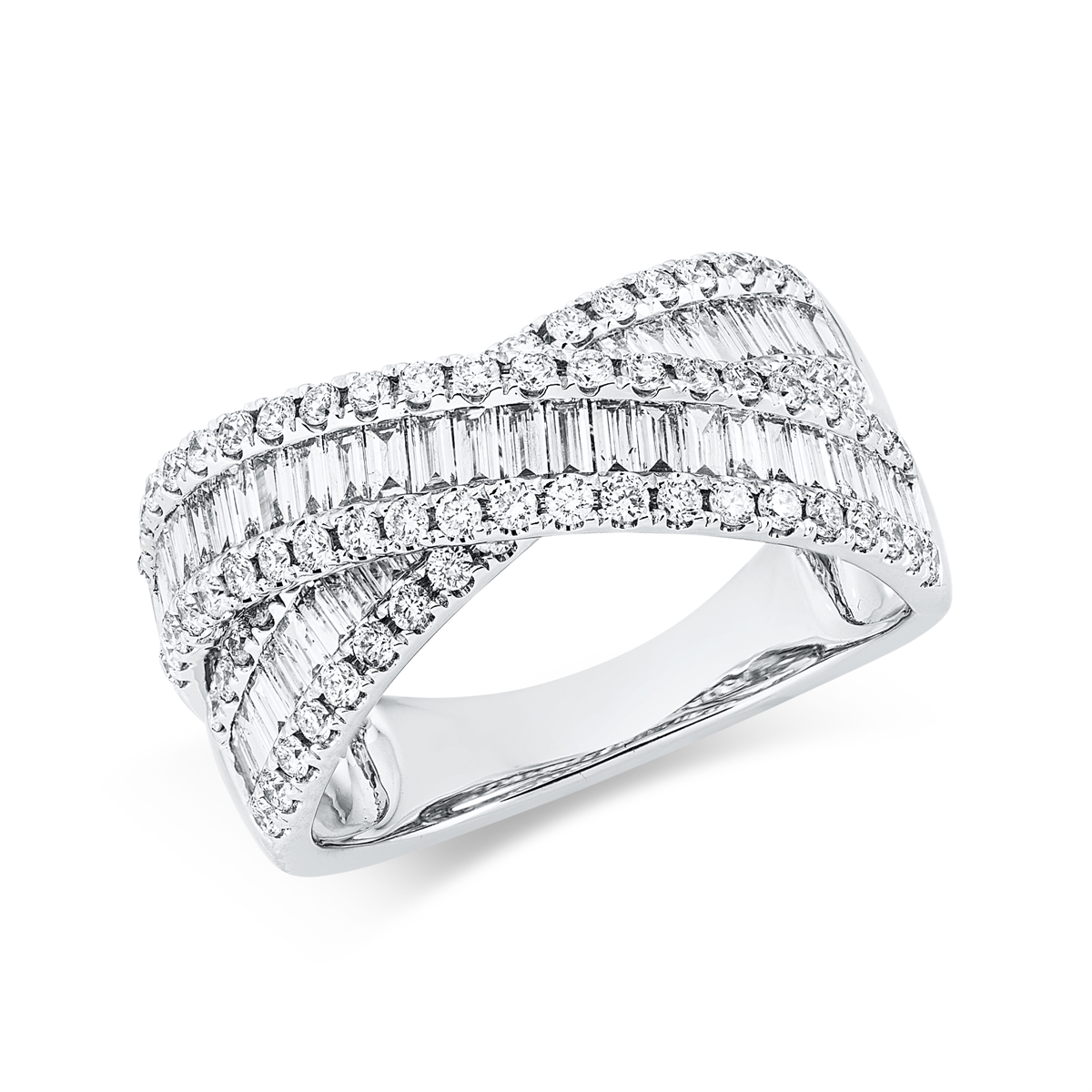 Ring 18 kt WG, 51 Baguette 0,90 ct, TW-si, 80 Brillanten 0,67 ct, TW-si, Weite:55