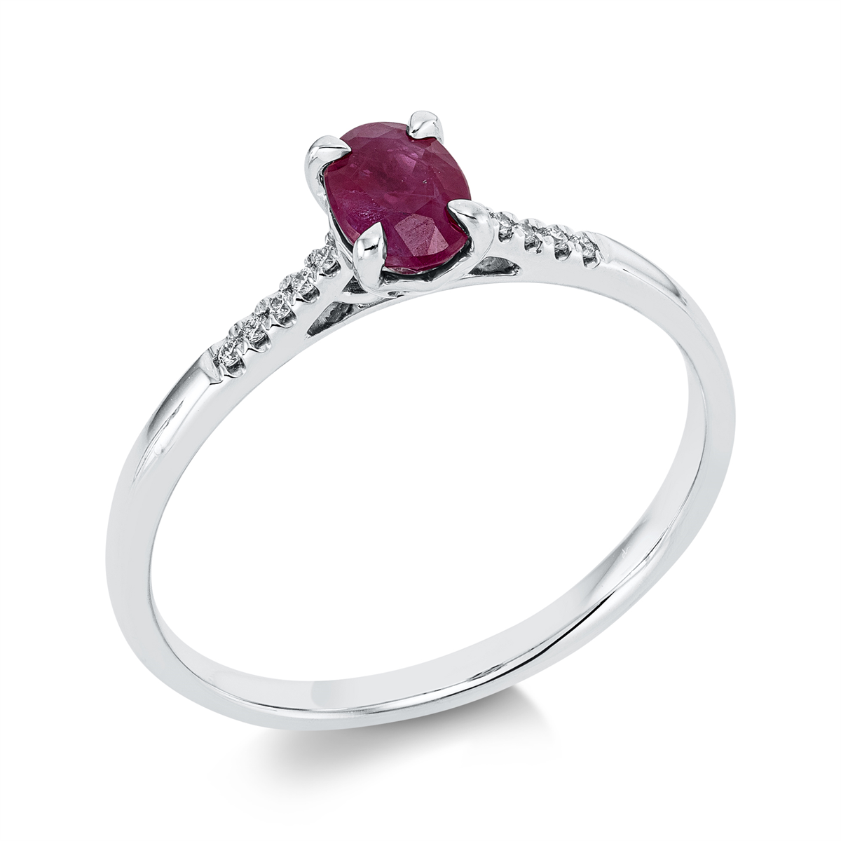 Ring 18 kt WG, 10 Brillanten 0,03 ct, TW-si, 1 Rubin 0,57 ct rot, H:4,3 mm, B:5,9 mm, Weite:54