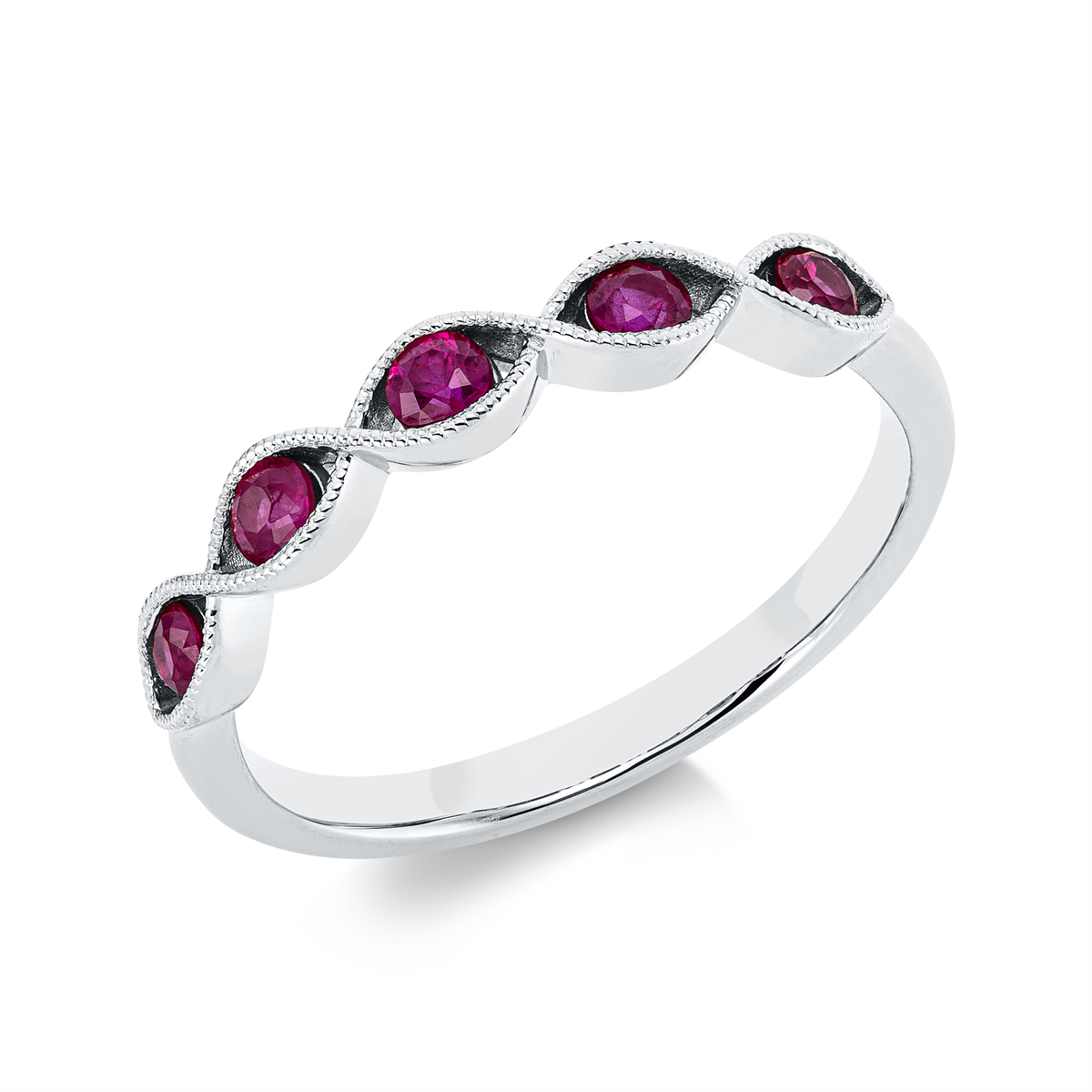 Ring 18 kt WG, 5 Rubine 0,38 ct rot, B:3,3 mm, Weite:54