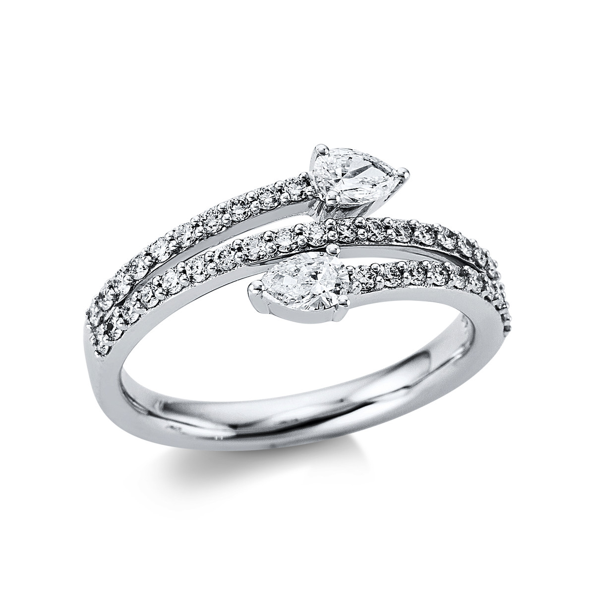 Ring 18 kt WG, 2 Tropfen 0,34 ct, TW-vsi, 40 Brillanten 0,34 ct, TW-vsi, Weite:54