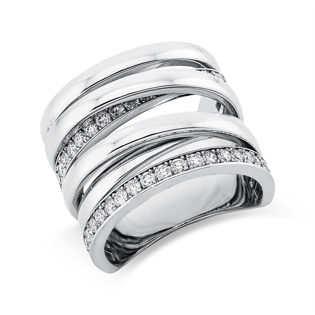 Ring 18 kt WG, 46 Brillanten 0,99 ct, F-si, B:16,5 mm, Weite:57