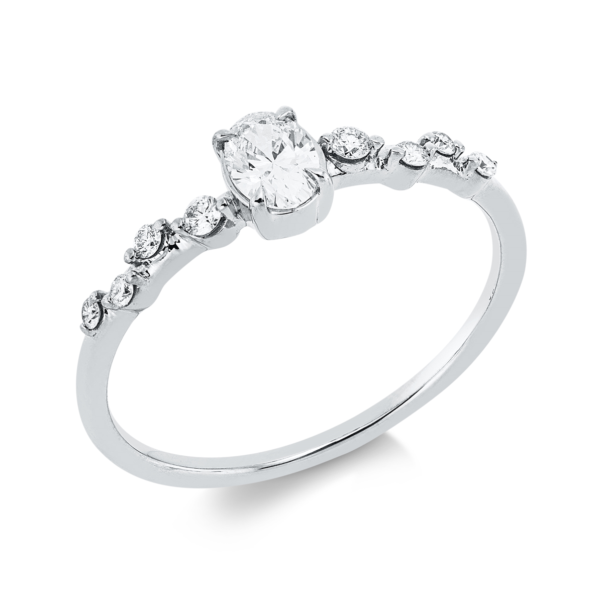 Ring 18 kt WG, 1 Oval 0,25 ct, TW-si, 8 Brillanten 0,08 ct, TW-si, H:3,1 mm, B:4,6 mm, Weite:54