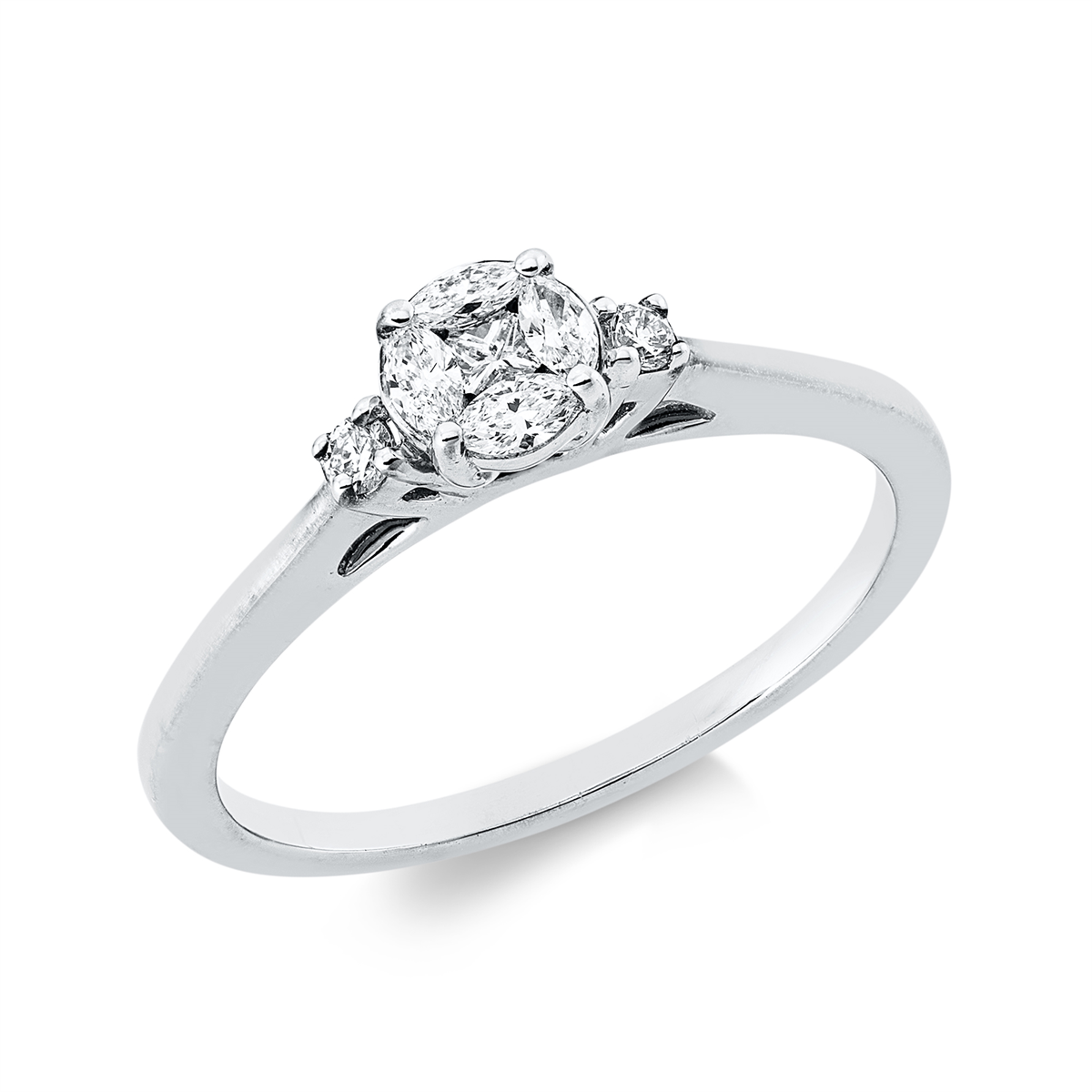 Ring 18 kt WG, 1 Princ. 0,04 ct, TW-vsi/si, 4 Navette 0,15 ct, TW-vsi/si, 2 Brillanten 0,05 ct, TW-vsi/si, H:8,6 mm, B:4,7 mm, Weite:53