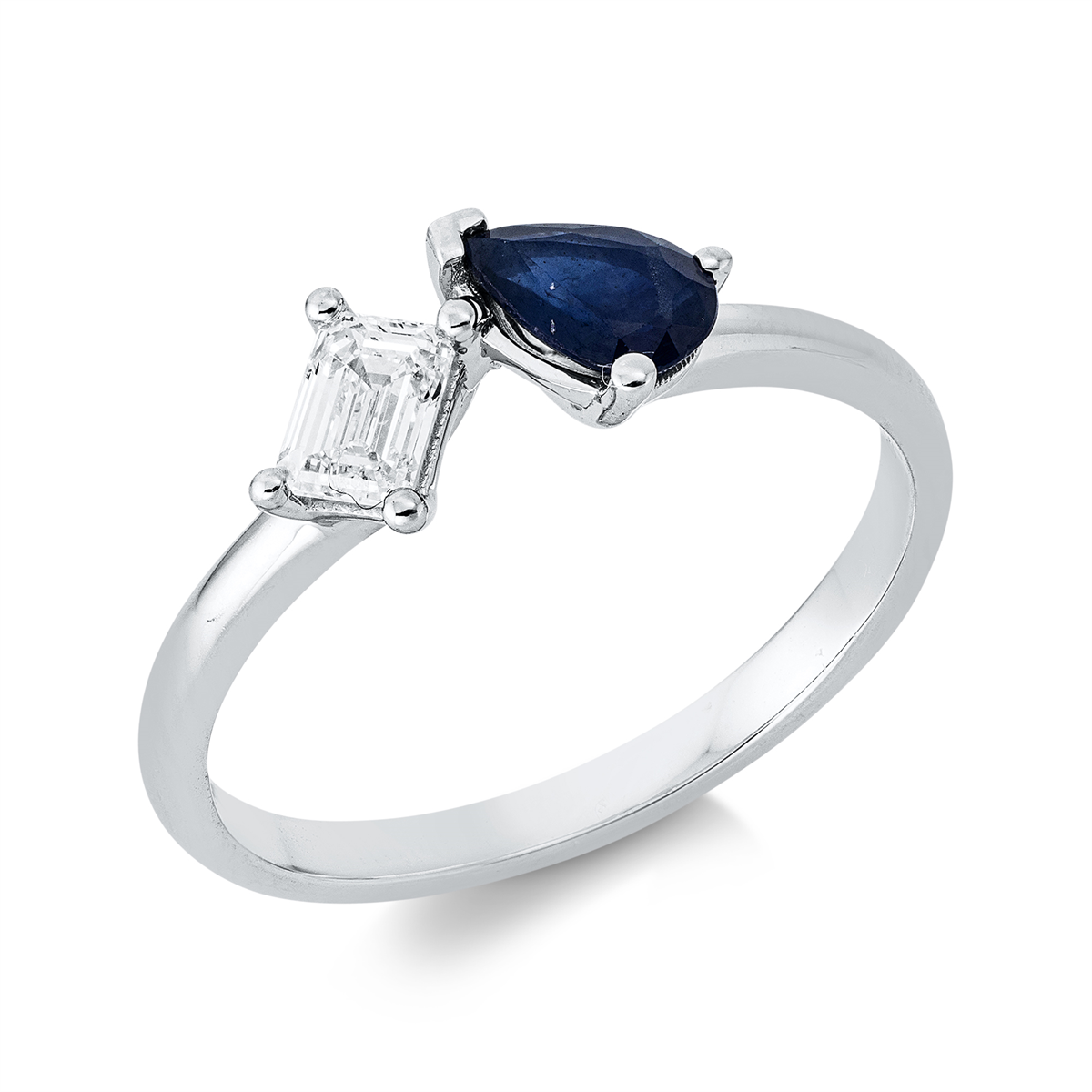 Ring 18 kt WG, 1 Sm.schliff 0,31 ct, TW-si, 1 Saphir 0,46 ct blau, Weite:54