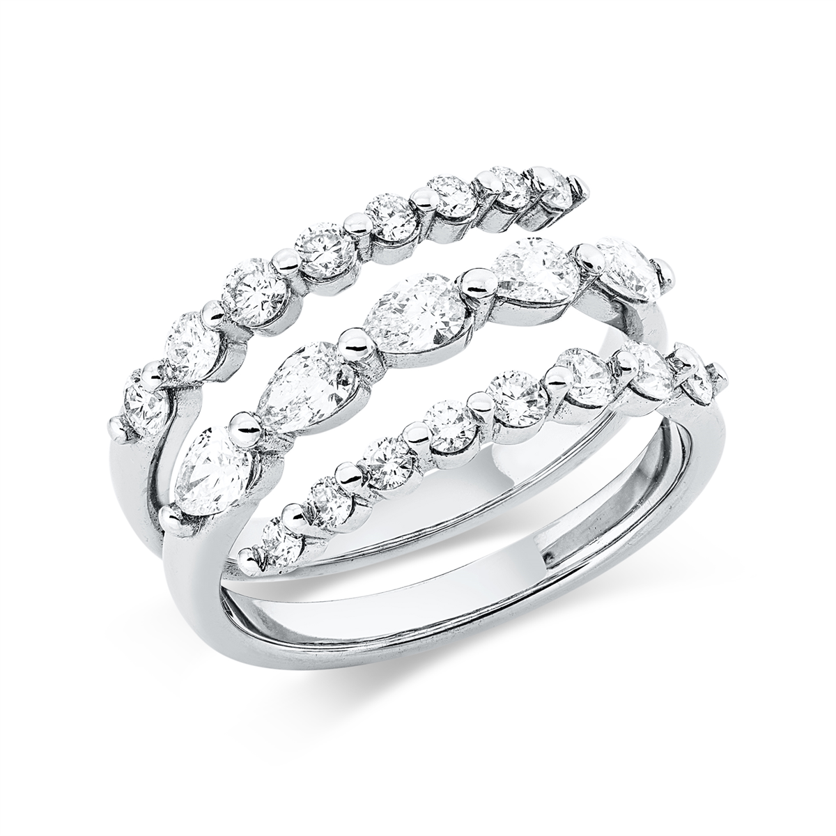 Ring 18 kt WG, 10 Brillanten 0,56 ct, TW-si, 9 Brillanten 0,16 ct, TW-si, 5 Navette 0,59 ct, TW-si, B:9,9 mm, Weite:54