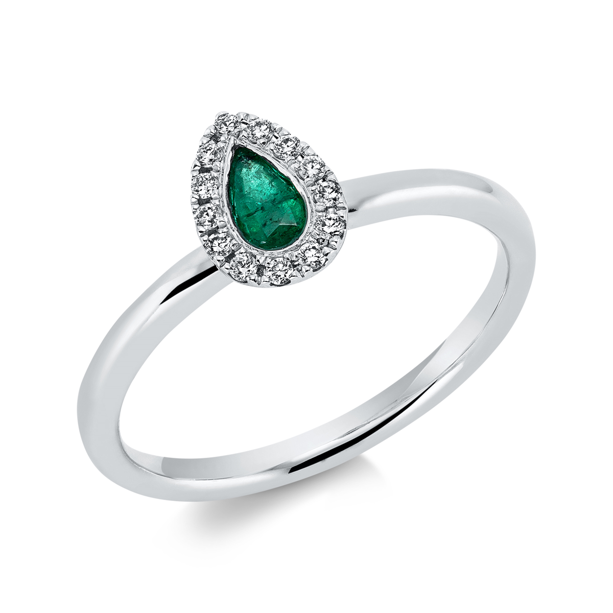 Ring 18 kt WG, 13 Brillanten 0,08 ct, TW-si, 1 Smaragd 0,19 ct grün, Weite:54