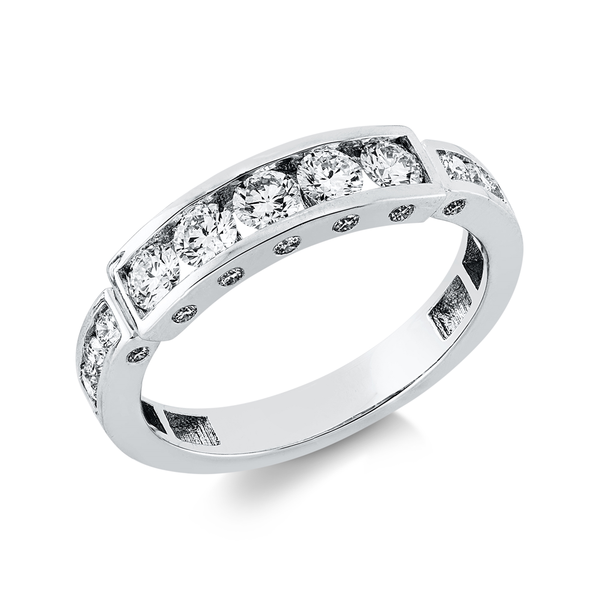 Ring 18 kt WG, 5 Brillanten 0,48 ct, TW-si, 20 Brillanten 0,28 ct, TW-si, B:4,5 mm, S:3,3 mm, Weite:53