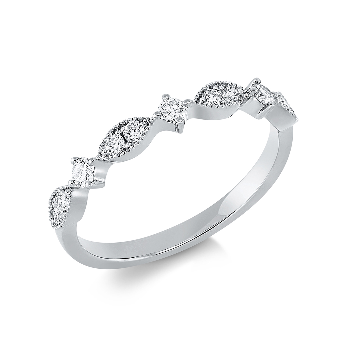 Ring 18 kt WG, 3 Brillanten 0,12 ct, TW-si, 8 Brillanten 0,13 ct, TW-si, Weite:53