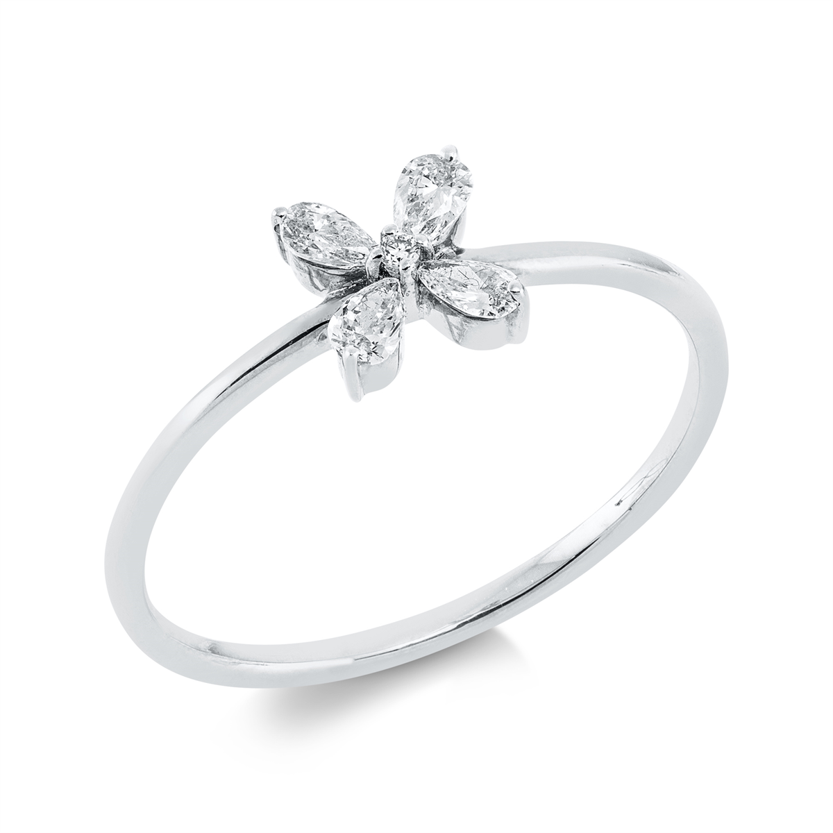 Ring 18 kt WG, 4 Tropfen 0,21 ct, TW-vsi, 1 Brill. 0,01 ct, TW-si, Weite:53