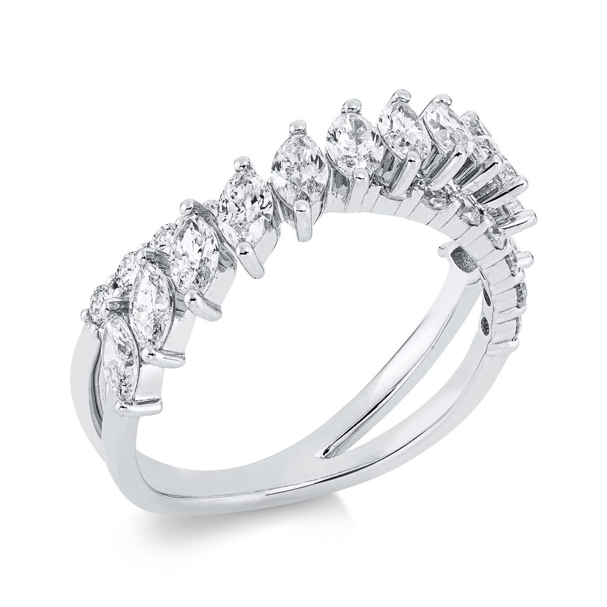 Ring 18 kt WG, 12 Navette 1,21 ct, TW-si, 14 Brillanten 0,36 ct, TW-si, Weite:54