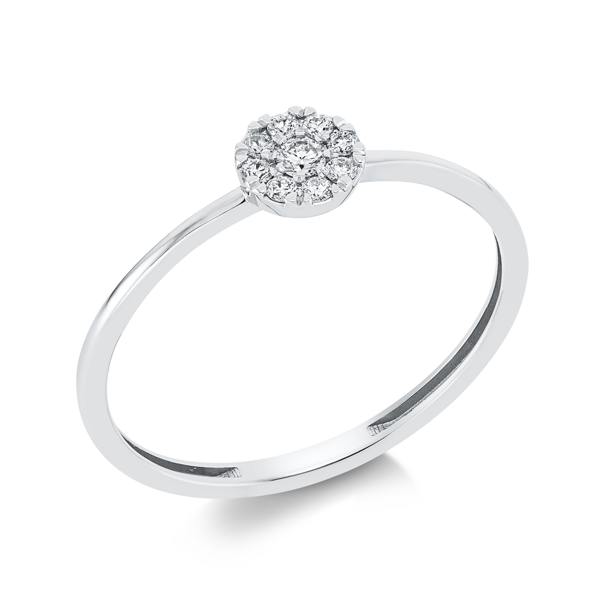 Ring 18 kt WG, 1 Brill. 0,03 ct, TW-si, 8 Brillanten 0,07 ct, TW-si, Weite:54