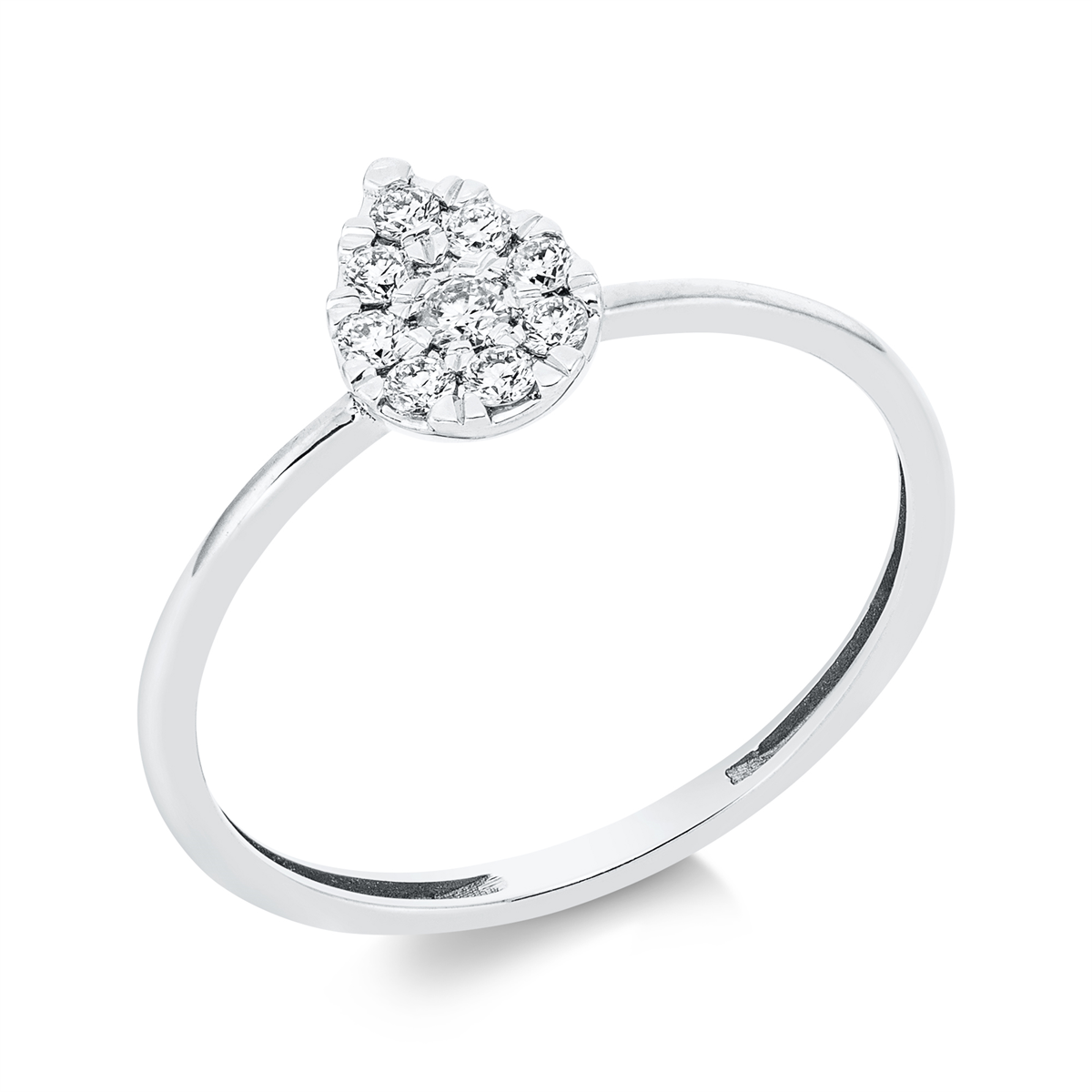 Ring 18 kt WG, 1 Brill. 0,03 ct, TW-si, 8 Brillanten 0,12 ct, TW-si, Weite:54