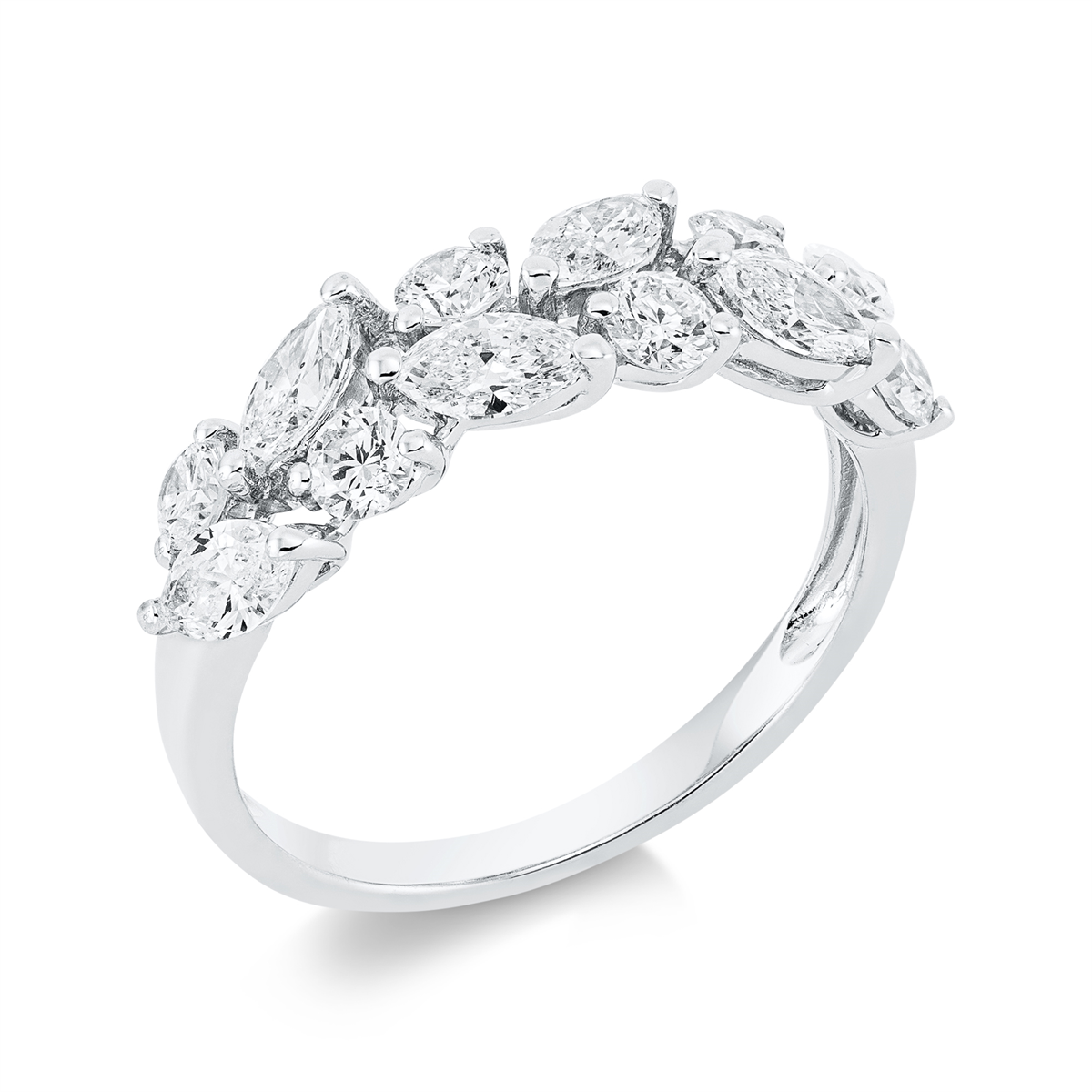 Ring 18 kt WG, 6 Navette 0,86 ct, TW-si, 6 Brillanten 0,56 ct, TW-si, Weite:54