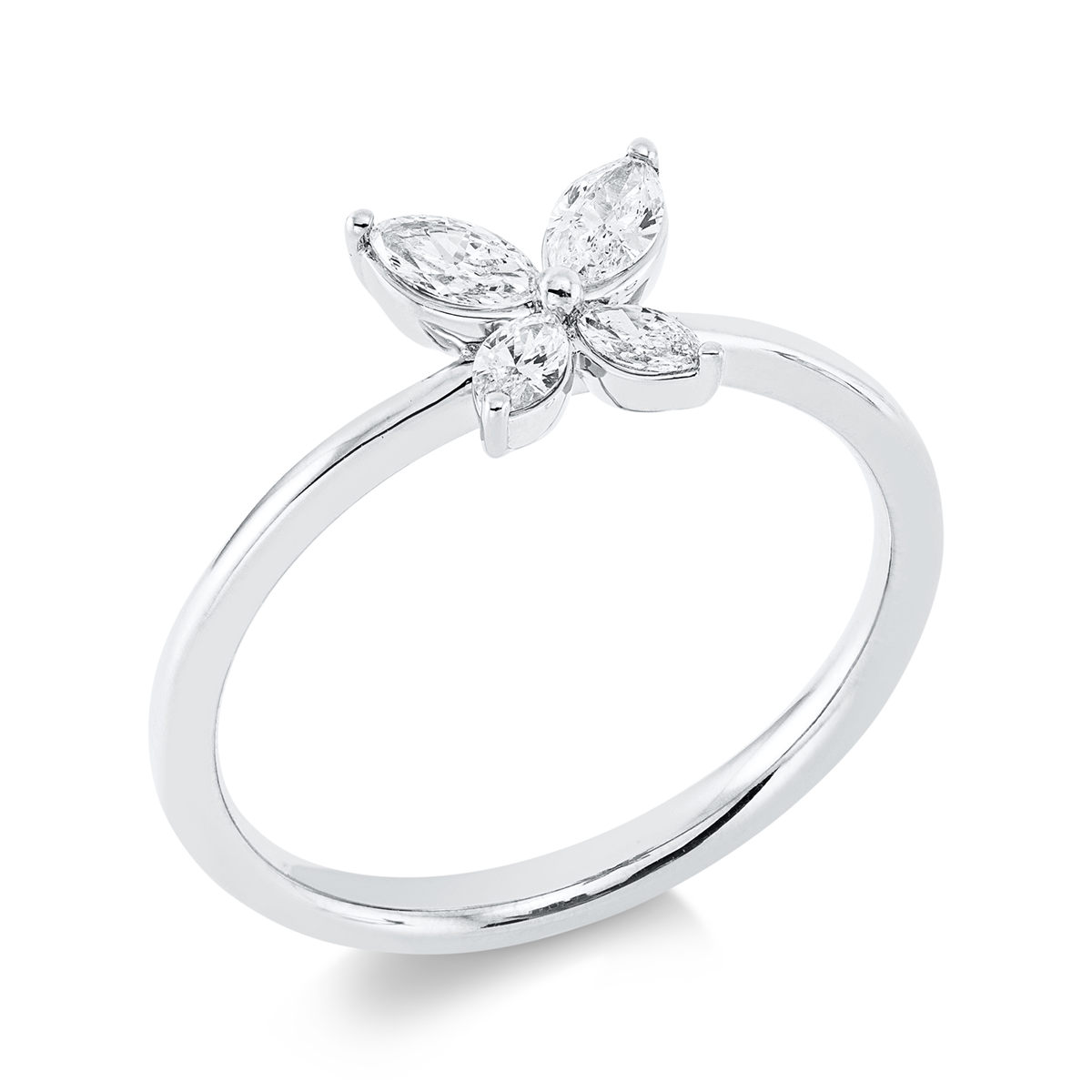 Ring 18 kt WG, 2 Navette 0,20 ct, TW-si, 2 Navette 0,10 ct, TW-si, Weite:54