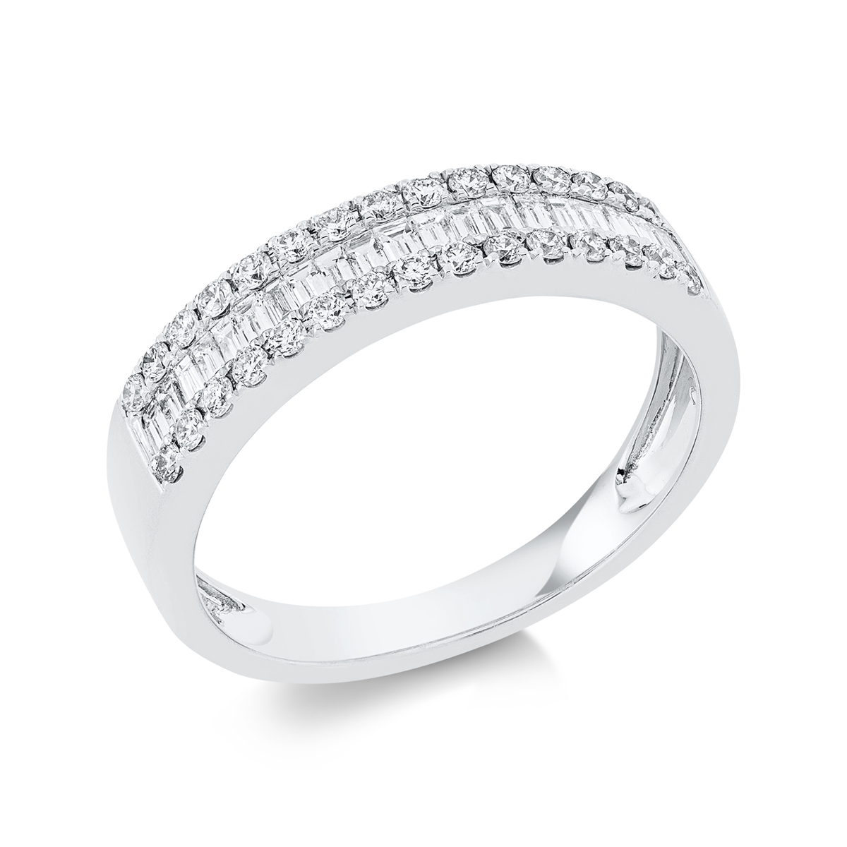 Ring 18 kt WG, 20 Baguette 0,28 ct, TW-vsi, 30 Brillanten 0,30 ct, TW-si, Weite:55