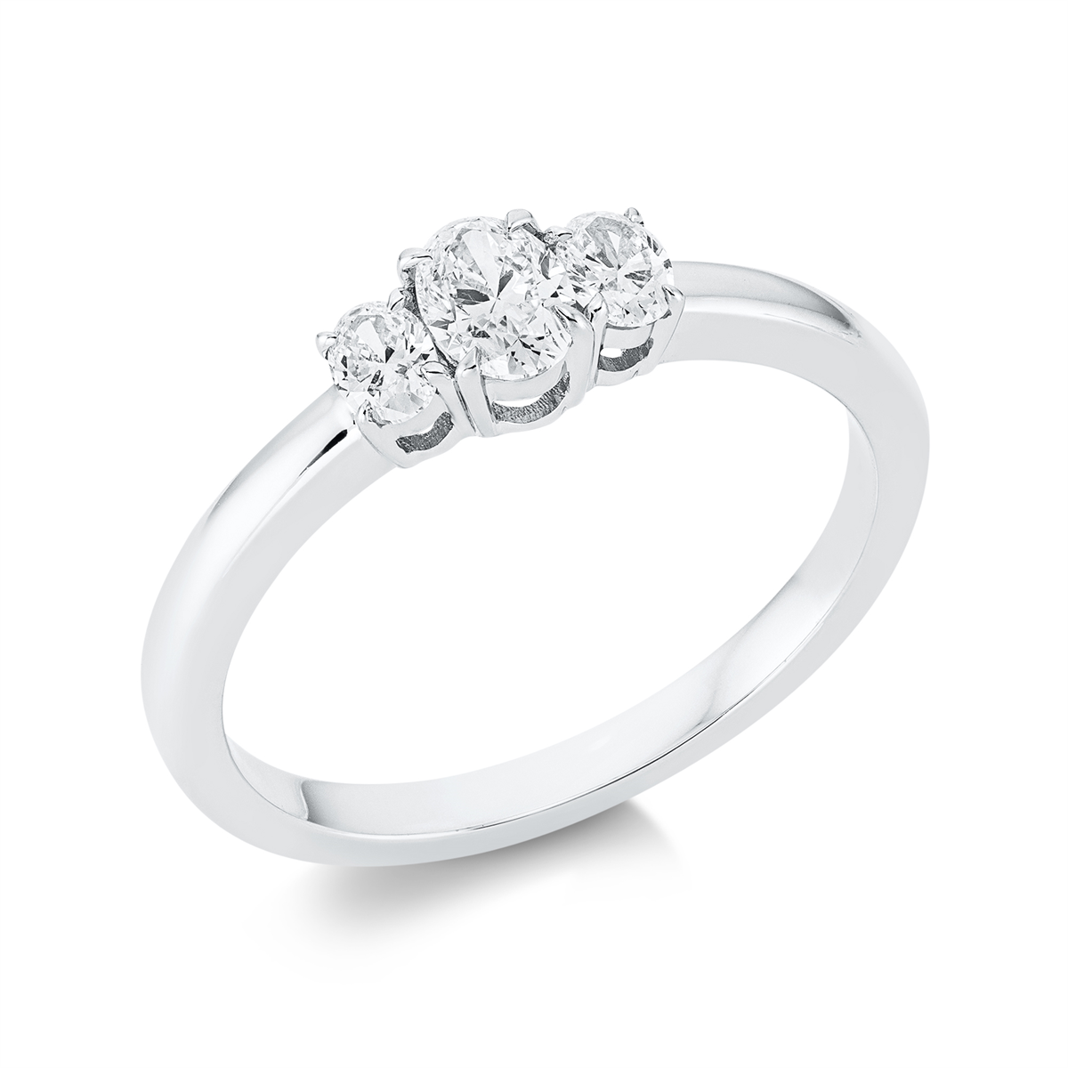 Ring 18 kt WG, 1 Oval 0,24 ct, TW-si, 2 Oval 0,21 ct, TW-si, Weite:57
