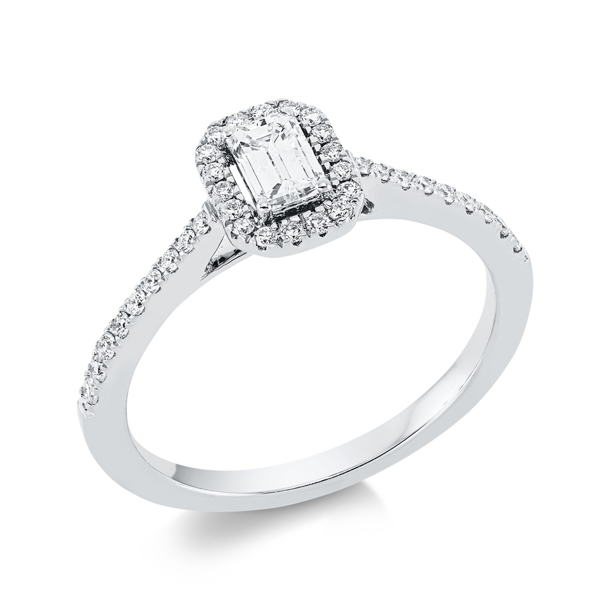 Ring 18 kt WG, 1 Sm.schliff 0,35 ct, TW-si, 36 Brillanten 0,23 ct, TW-si, Weite:54
