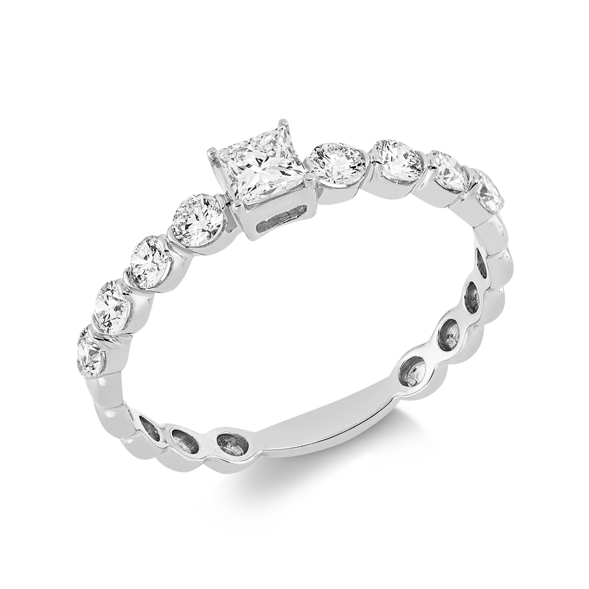 Ring 18 kt WG, 1 Princ. 0,18 ct, TW-si, 8 Brillanten 0,40 ct, TW-si, Weite:54