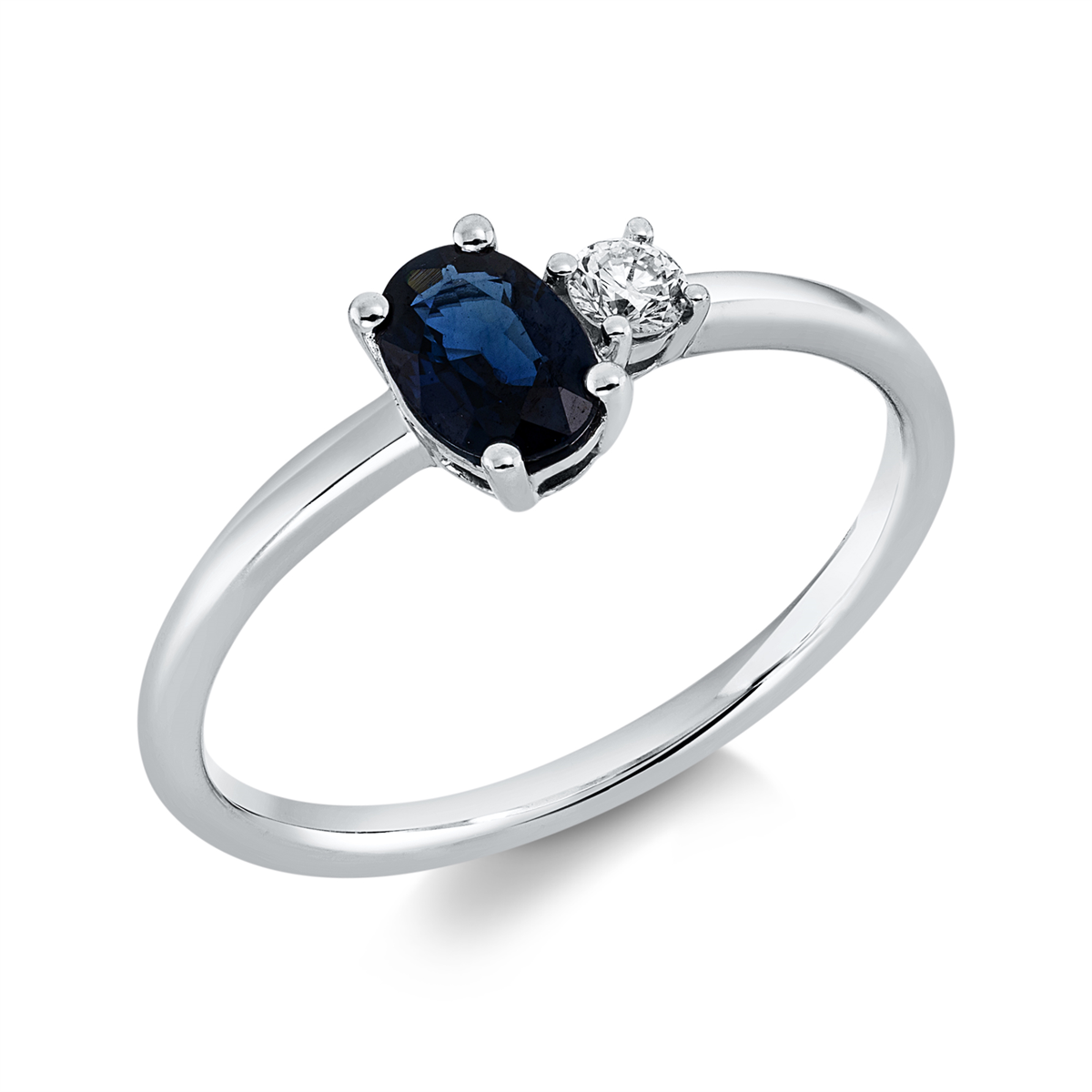 Ring 18 kt WG, 1 Brill. 0,08 ct, TW-si, 1 Saphir 0,57 ct blau, Weite:54