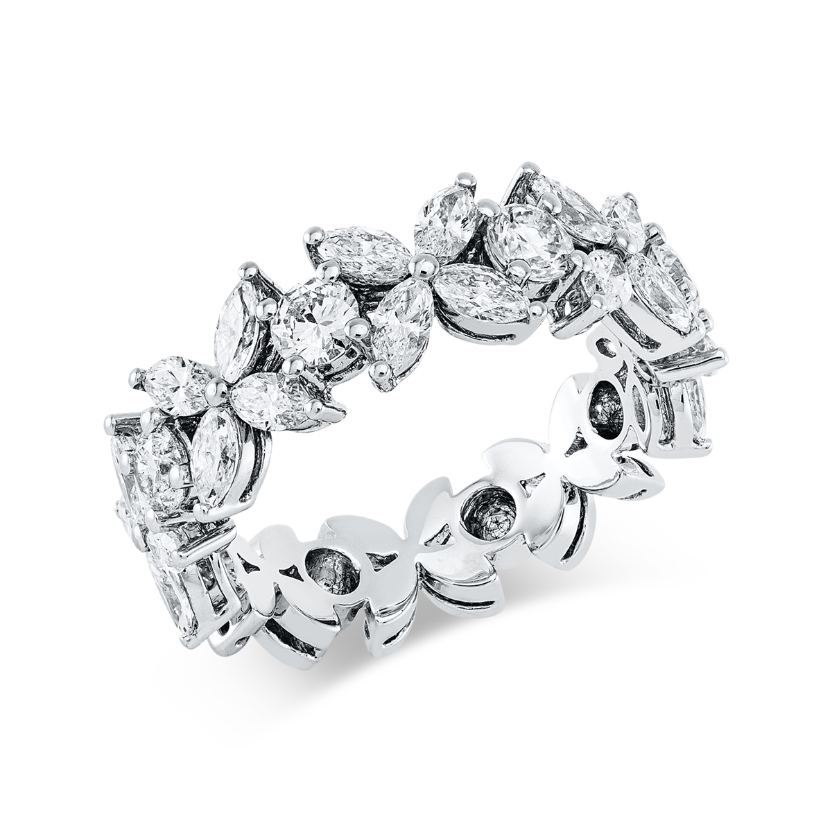 Ring 18 kt WG, 20 Navette 1,43 ct, F-vsi, 4 Brillanten 0,61 ct, F-vsi/si, Weite:53