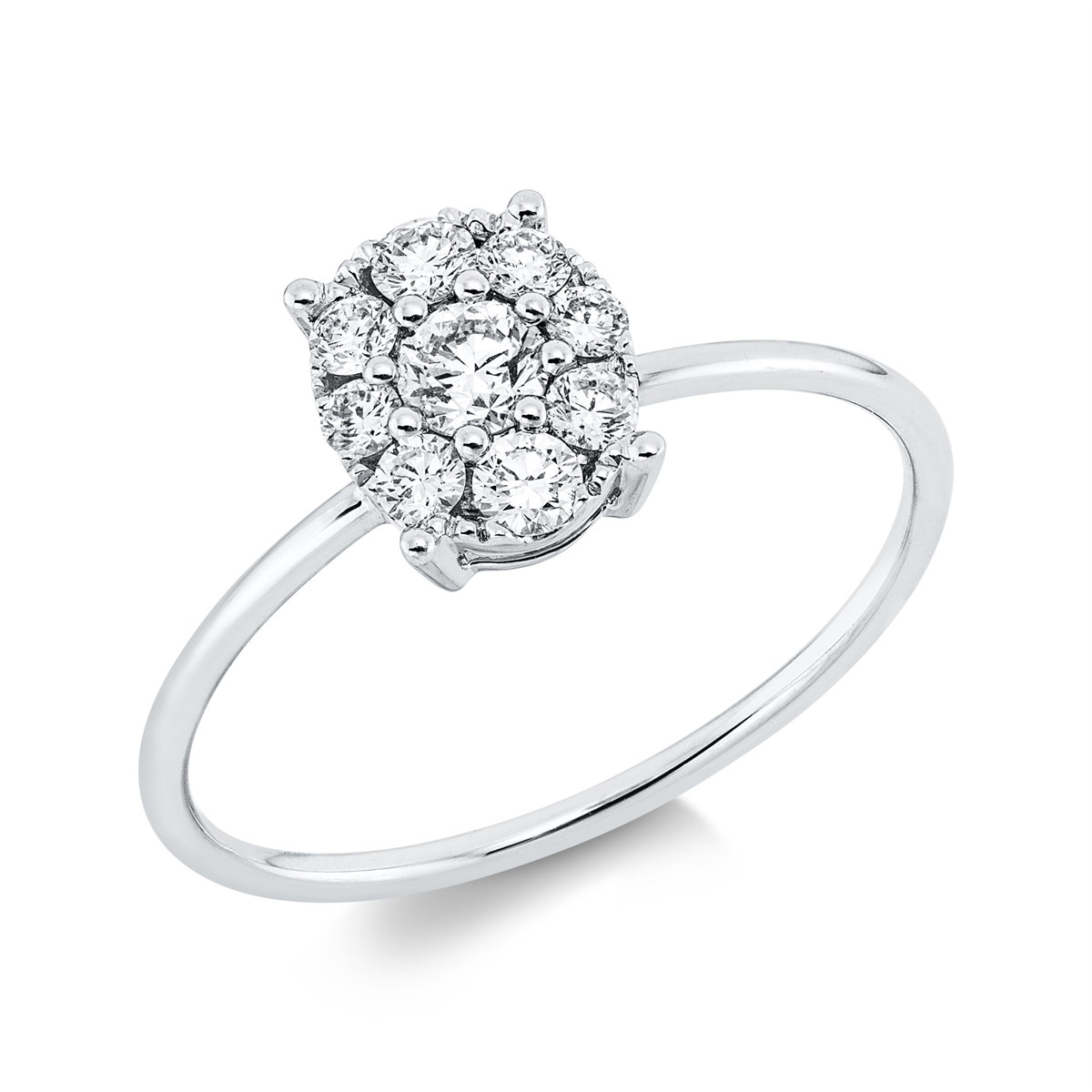 Ring 18 kt WG, 9 Brillanten 0,34 ct, TW-si, Weite:53