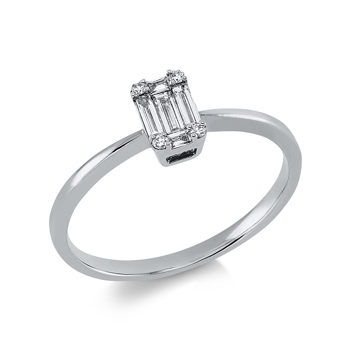 Ring 18 kt WG, 4 Brillanten 0,03 ct, TW-si, 5 Baguette 0,17 ct, TW-vsi, Weite:52