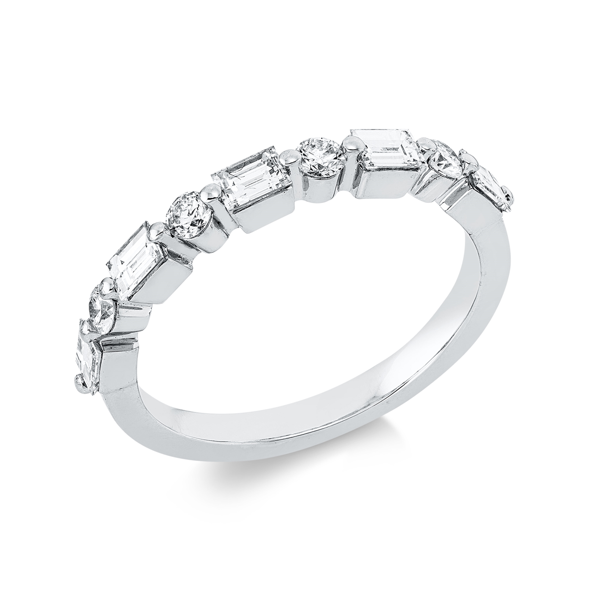 Ring 18 kt WG, 5 Baguette 0,54 ct, TW-vsi, 4 Brillanten 0,20 ct, TW-si, Weite:53