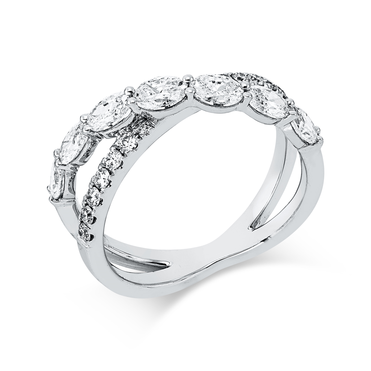 Ring 18 kt WG, 7 Oval 1,09 ct, TW-vsi, 14 Brillanten 0,20 ct, TW-si, Weite:53