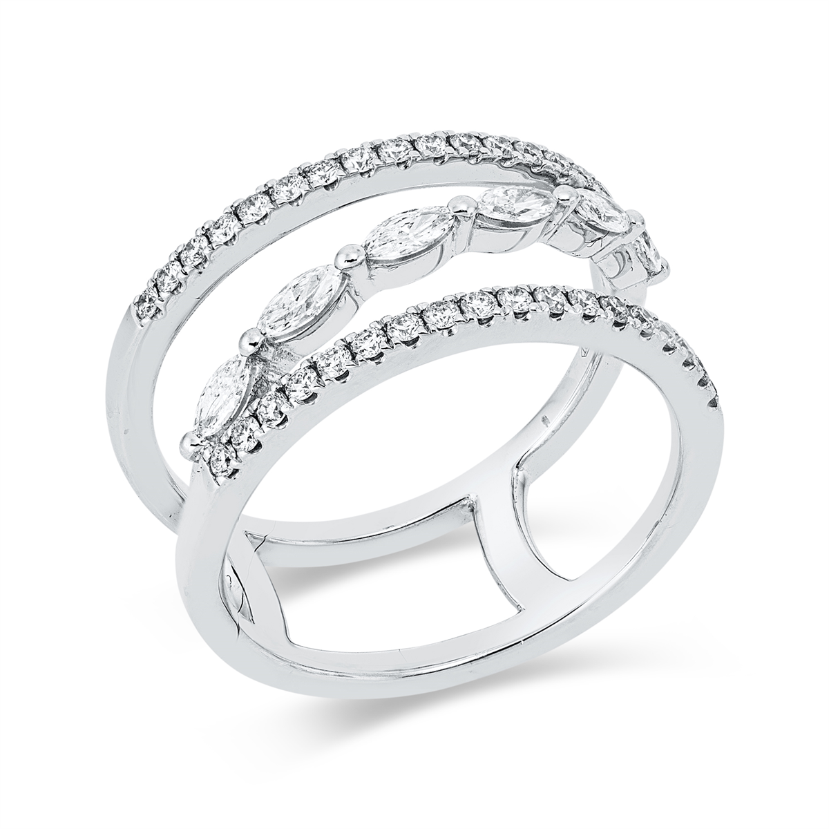 Ring 18 kt WG, 6 Navette 0,30 ct, TW-si, 36 Brillanten 0,31 ct, TW-si, Weite:53