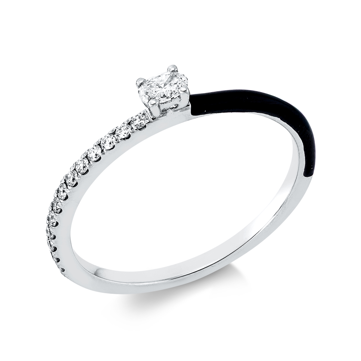 Ring 18 kt WG, 1 Oval 0,08 ct, TW-si, 13 Brillanten 0,09 ct, TW-si, 1 Emaille 0,05 ct schwarz, H:3,5 mm, B:2,8 mm, Weite:54