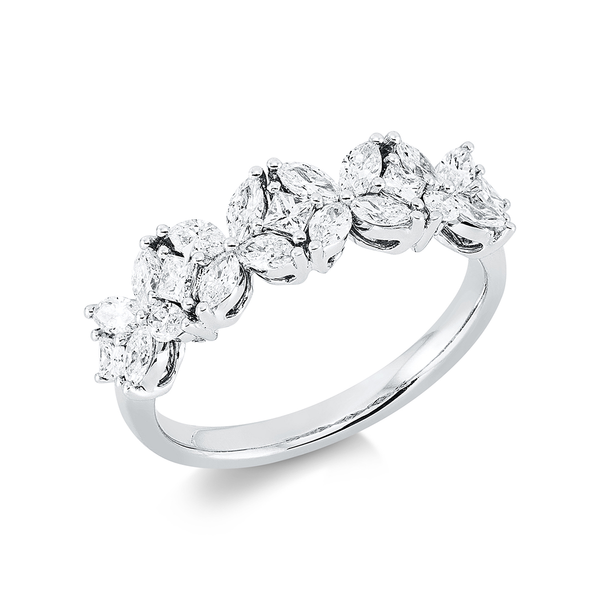 Ring 18 kt WG, 5 Princ. 0,23 ct, TW-si, 16 Navette 0,70 ct, TW-si, B:5,7 mm, Weite:53